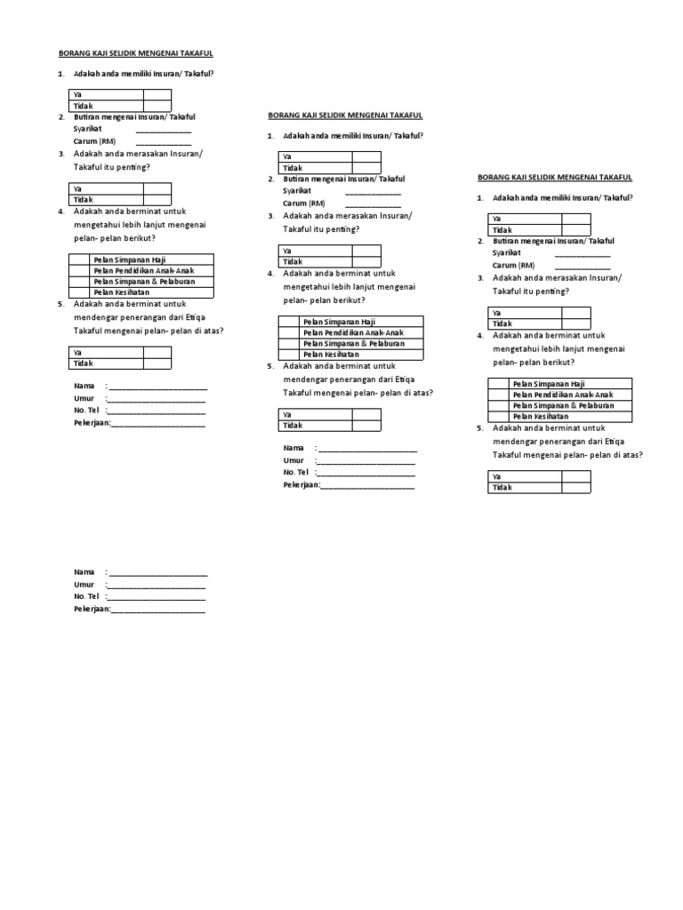 Borang Kaji Selidik Mengenai Takaful Pdf
