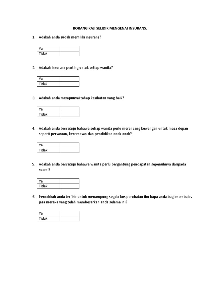 Borang Kaji Selidik Mengenai Insurans Pdf